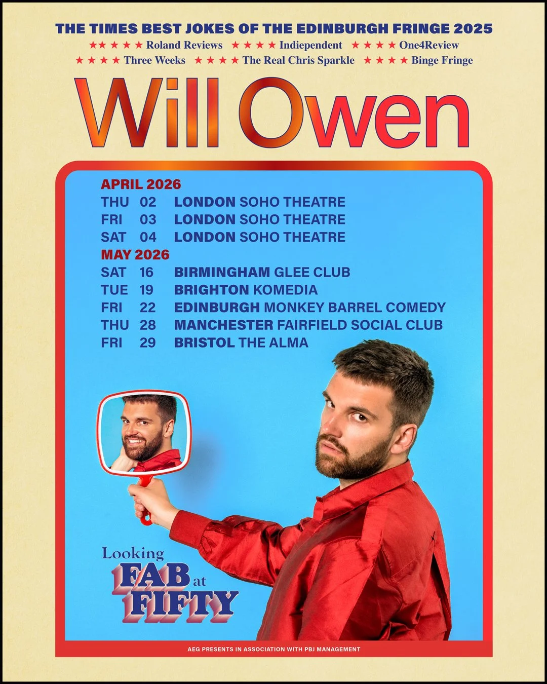 26-year-old comedian Will Owen thinks the future looks bright (no further questions). Fresh from The Edinburgh Fringe 2025, Will is going on a UK wide tour, as he seeks to replace the empty gratifications of his forlorn life with the deep profundity of light entertainment. He's gay! He's lonely! But most importantly, he's live!